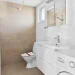 Die Unterkunft in Odder verfügt über ein Badezimmer mit einer Dusche und einer Waschmaschine.